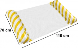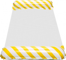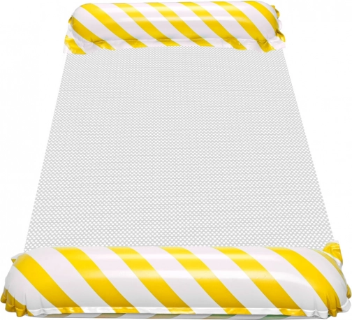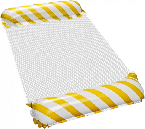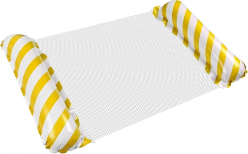 Užijte si odpočinek na pláži nebo bazénu s tímto biało-žlutým matracem. Nafukovací strany zajišťují rovnováhu, zatímco silná síťka udrží vaše tělo na vodě. Je navržen tak, aby poskytoval pohodlí jak pro ležení, tak posezení v klidné vodní hladině.