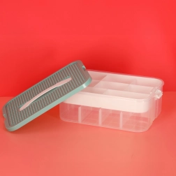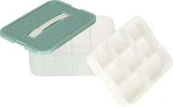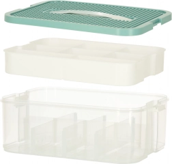 Organizér je vyroben z odolného plastu, zatímco modrá víko dodává atraktivní vzhled.