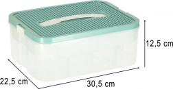 Tento organizér je ideálním řešením pro ty, kteří potřebují udržet pořád na hračky, stavebnice nebo jiné drobnosti. Obsahuje transparentní úložný box s robustními západkami pro bezpečné uchování obsahu.