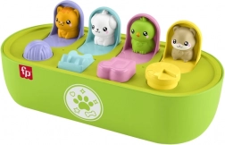 Tato barevná vyskakovací hra s figurkami zvířátek nabízí dětem nekonečné objevy: každému okénku odpovídá jiný pohyb – stisk, posun, otočení nebo přepnutí. Za každý správný pohyb přijde odměna v podobě vyskočeného kamaráda, což podporuje pochopení příčiny a následku a trénuje koordinaci oko–ruka.