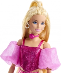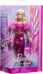 Objevte svět módy s panenkou Barbie Deluxe modelka v třpytivém růžovém outfitu. Nápaditý korzet s nadýchanými rukávy, lesklé kalhoty a sladěné doplňky vytvářejí dokonale sladěný vzhled, který zaujme na první pohled. Panenka má dlouhé blond vlasy vhodné pro česání a styling a díky kloubům snadno zaujme pózy z přehlídkového mola.