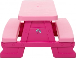 Tento dětský piknikový stůl je vyroben z výrazného růžového plastu, který nejen vypadá stylově, ale také snadno přitahuje pozornost dětí.