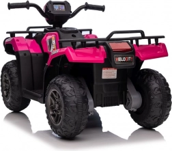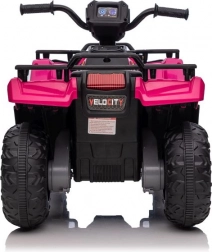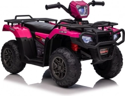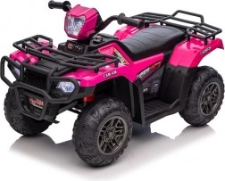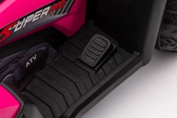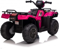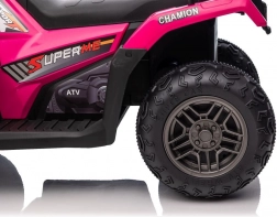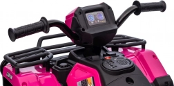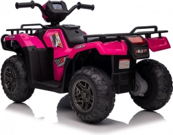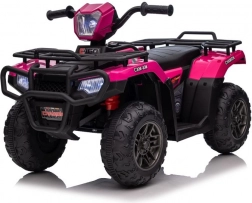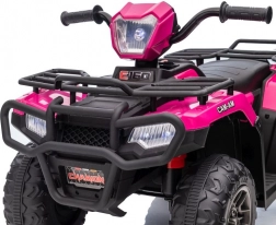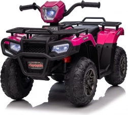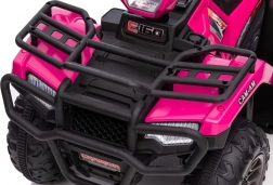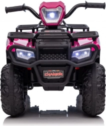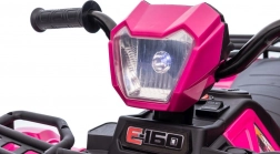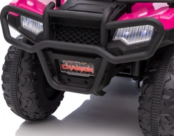 Tato růžová elektrická čtyřkolka pro děti napodobuje skutečný ATV styl – má výraznou masku, funkční světlomety a čtyři terénní kola pro lepší stabilitu. Je navržena pro snadné ovládání, podporuje koordinaci a jistotu při první jízdě.