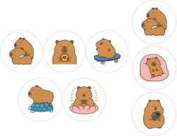 Udělejte radost vašim dětem s naším nálepkovým setem s kapybarou. Sada nabízí 500 jedinečných nálepek představujících kapybary v různých pózách, jako je kapybara na skateboardu, meditující kapybara či kapybara s fotoaparátem. Díky průměru 2,5 cm jsou nálepky ideální pro dekoraci různých povrchů, ať už jde o notebooky, diáře či dárková balení.