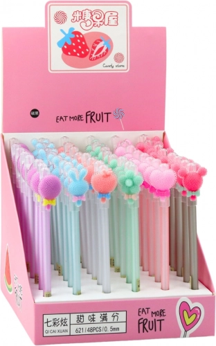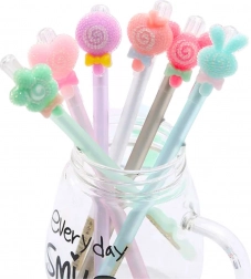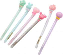 Funkční a roztomilé gelové pero s mazací špičkou je skvělým nástrojem pro děti, mládež i dospělé. Štíhlá špička 0,5 mm zajišťuje přesné a pohodlné psaní. Modrý inkoust je ideální pro každodenní poznámky, školní práce nebo plánování. Dekorativní uzávěr dodává peru estetický vzhled, který přitahuje pozornost.