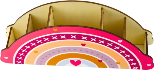 Dřevěný organizér na stůl pro děti v růžové barvě s motivem duhy