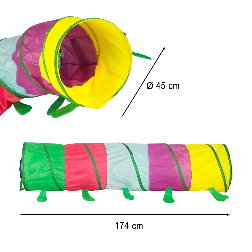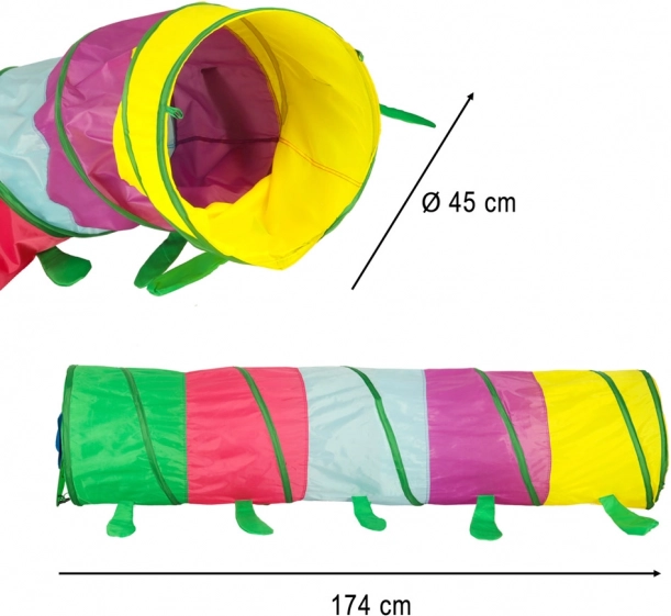 Tento roztomilý tunel-gąsienica je skvělým doplňkem pro dětské hry, integraci a senzomotorický rozvoj. Děti od 3 let se mohou hravě zapojit za dohledu dospělých. Hračkový překážkový dráha podpoří rozvoj motorických dovedností a pohybové koordinace.