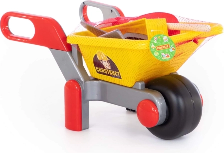 • Obsahuje kolečko, přilbu, lopatku, lžíci a nástroje pro zednické práce.