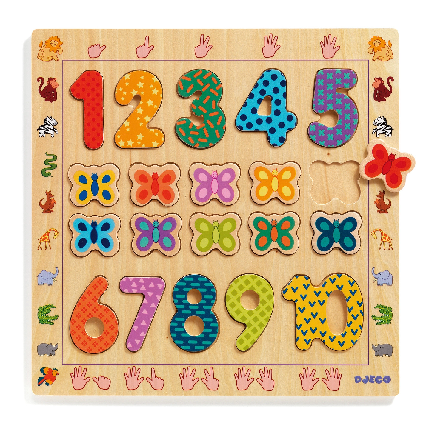 Vkládací puzzle Počítání s motýlky od značky DjECO přináší zábavu a vzdělání v jednom. Pomáhá dětem rozvíjet jemnou motoriku, rozpoznávání tvarů a základní počítání.