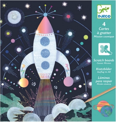 Vyškrabávací obrázky Vesmírná mise od Djeco jsou úžasnou kreativní zábavou pro děti. Díky těmto sadám děti objevují kouzelnou krásu vesmírných obrázků skrytých pod vrstvou k vyškábnutí.