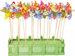 Dětský dřevěný větrník SMALL FOOT je ideální dekorace pro dům i zahradu. Pestrobarevné lopatky se roztáčejí i při mírném vánku a zaujmou děti hrou se světlem a barvami. Díky robustní dřevěné tyčince jej snadno zapíchnete do zeminy v truhlíku nebo přímo na záhon.