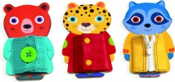 Zábavná hračka Djeco pro rozvoj jemné motoriky dětí. Pomocí této hračky se děti naučí různé způsoby zapínání jako jsou knoflíky, zipy a přezky.