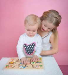 Deska je vyrobena ze silné překližky, která je odolná vůči každodennímu používání. Hračka podporuje trpělivost, soustředění a přirozenou dětskou zvídavost, přičemž nabízí bezpečnou a smysluplnou zábavu.