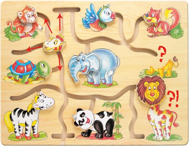Dřevěný labyrint se zvířátky je ideální pomůckou pro rozvoj dětských dovedností už od útlého věku. Díky barevným motivům a pohyblivým dílkům děti snadno pochopí, jak přiřadit správnou hlavu k tělu zvířete, a zároveň si procvičí koordinaci ruky a oka.