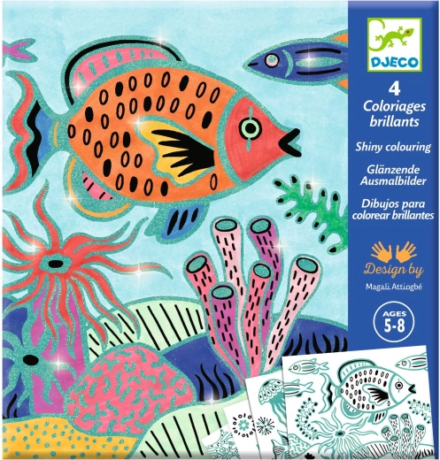 Objevte svět pod mořem s těmito úžasnými třpytivými omalovánkami od značky Djeco. Každý list je připraven k tomu, aby byl pokryt lesklým třpytem, což vytváří úchvatný efekt.