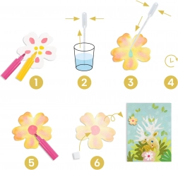 Sada Djeco Tvoření s pijáky z lesa přináší jedinečnou techniku malování na savý papír. Dítě odtrhne tvar z předem vyřezaného pijáku, umístí jej na podklad, udělá perem několik teček a pomocí pipety přidá kapku vody. Inkoust se přirozeně rozlije a vytvoří magické barevné efekty. Po zaschnutí hotový motiv snadno přilepí na ilustrovaná pozadí a vyzdobí jím svůj pokoj.