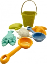 Obsahuje lopatku, hrábě a kyblíček - vše, co děti potřebují pro stavbu pískových hradů a jiných kreací.