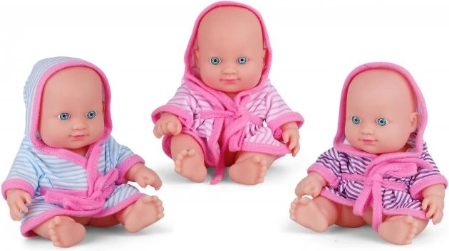 Roztomilé miminko v župánku je ideální volbou pro malé slečny hledající hračky s důrazem na detail a jemnost. Dostupné v široké škále barev jako modrá, růžová a fialová.