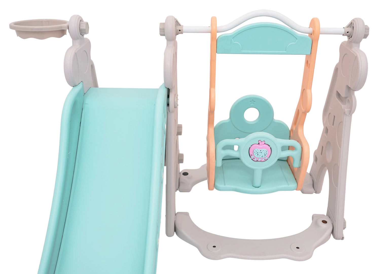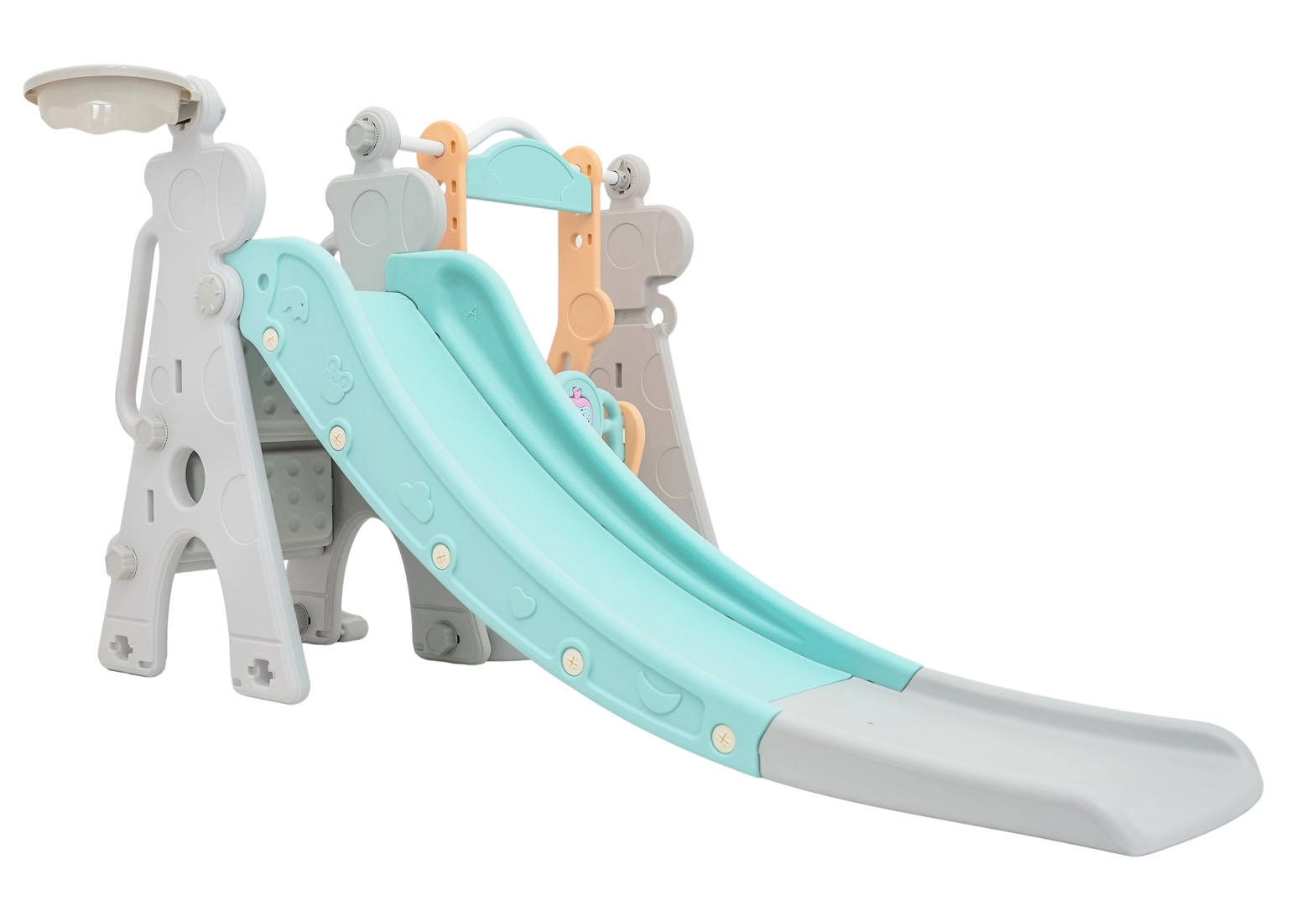 Univerzální zábavní sada 3v1 pro děti od 1 roku nabízí zábavu s klouzačkou, houpačkou a basketbalem. Vyrobeno z odolného HDPE materiálu, který zajišťuje bezpečnost a snadnou montáž.