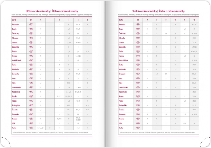 Diář je doplněn česko-slovenským kalendáriem a doplňkovou angličtinou, němčinou, maďarštinou a ruštinou.