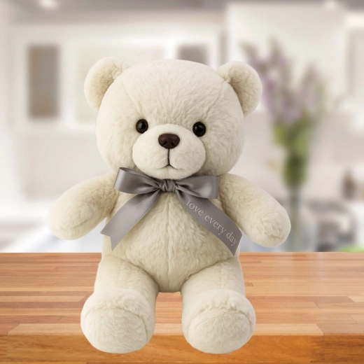 Nejvýraznějším prvkem medvídka je stříbrná saténová mašle s nápisem "Happy every day", která dodává hračce výjimečný a elegantní vzhled. Medvídek má zaoblenou hlavičku, přátelská očka a široké tlapky, což v dítěti vzbuzuje pocit bezpečí a blízkosti. Díky vhodné velikosti je medvídek lehký, snadno přenosný a ideální k mazlení.