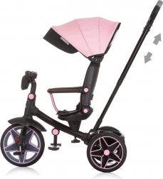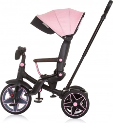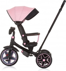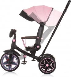 - Praktické funkce pro rodiče: Výškově nastavitelná rukojeť, volnoběžné pedály a brzdové pedály na zadních kolech.