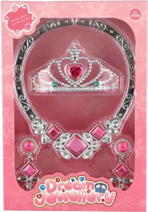 Staň se princeznou během okamžiku s touto okouzlující sadou krásy, která obsahuje vše, co malá parádnice potřebuje ke svému královskému vzhledu – třpytivou korunku, ladící náhrdelník a elegantní naušnice.