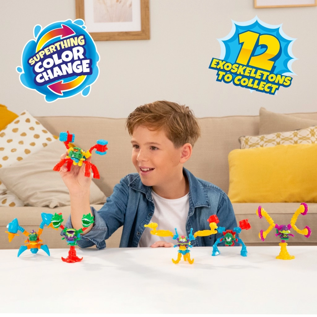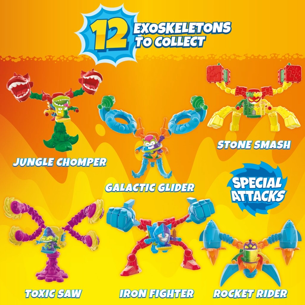 Vítáme vás ve světě SuperThings, kde se běžné předměty mění v superhrdiny a superpadouchy. Tato série Mutant Battle přináší nové vzrušení s 12 novými Exoskeletony, které obohacují vaše sbírky.