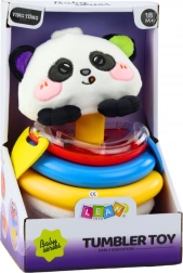 Tato rozkošná hračka typu tumbler ve tvaru pandy je navržena tak, aby se jemně kývala, aniž by se převrátila, což láká děti k interakci a stimuluje jejich zvědavost. Barevné kroužky s různými povrchy, včetně jednoho s průhlednou částí plnou chrastících kuliček, umožňují dětem pozorovat pohyb prvků, což stimuluje jejich zrak, sluch a učí příčinným souvislostem.
