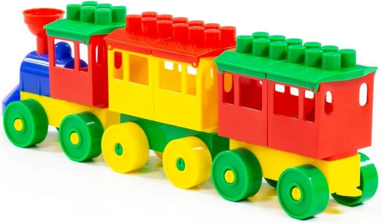 Barevná plastová vláčková sada je ideální pro malé děti od 3 let. Sada obsahuje lokomotivu a dva vagony, což dětem umožňuje rozvíjet kreativitu a jemnou motoriku.