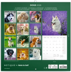 Užijte si krásné obrázky psů každý měsíc s tímto kalendářem pro rok 2026. Kalendář zahrnuje: