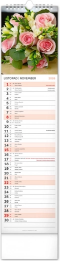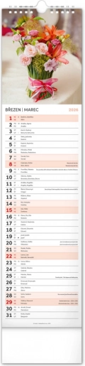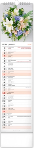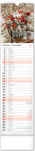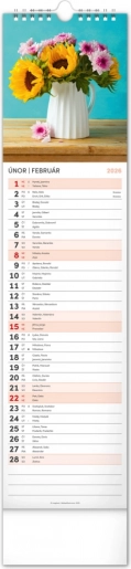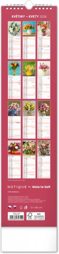 Nástěnný kalendář Notique Květiny 2026 kombinuje estetiku a funkčnost. • Okouzlující fotografie květin vás budou provázet po celý rok. • Praktický formát 12 x 48 cm se snadno vejde do každého prostoru. • Dvojjazyčné informace v češtině a slovenštině, včetně jmen, svátků, památných dnů a měsíčních fází. • Prostor pro vaše vlastní poznámky na každý den, což vám pomůže uspořádat úkoly a plány efektivně.