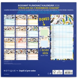 Užijte si plánování s tímto krásným rodinným kalendářem Animalium 2026, který obsahuje slovenské kalendárium a umožňuje snadnou organizaci aktivit až pro pět členů domácnosti.