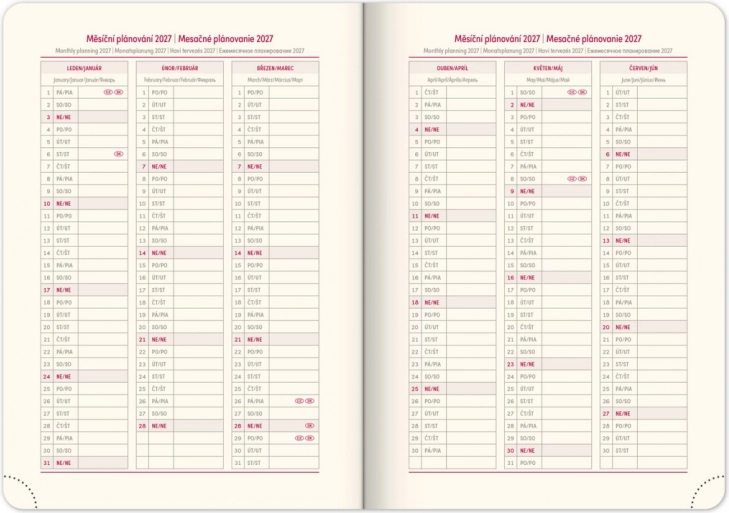 - Měsíční plánovací kalendář pro roky 2026 a 2027