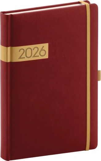 Denní diář 2026 v elegantní bordó-zlaté kombinaci je ideálním pomocníkem pro precizní organizaci vašich dní. Díky jedinečné kombinaci povrchů nabízí nejen styl, ale také maximální funkčnost.