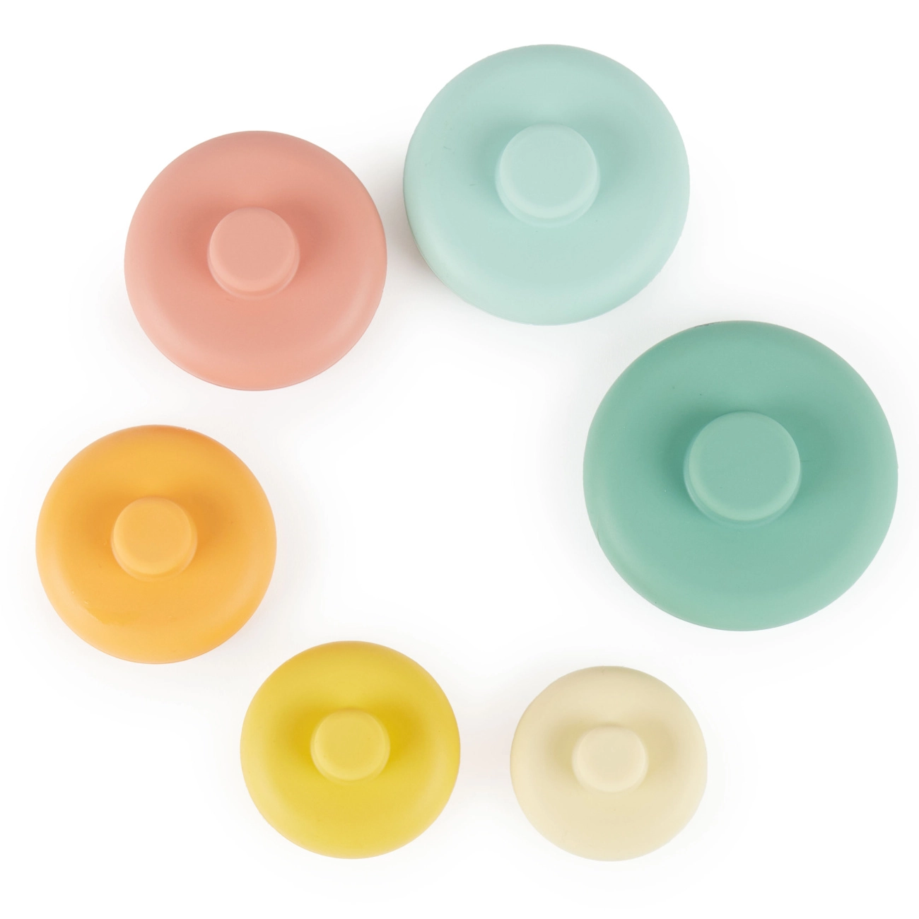 Kreativní hračka pro malé stavitele od 12 měsíců. Podpořte dětskou zvídavost a motorické dovednosti s touto 6dílnou silikonovou stohovací sadou, která nabízí možnosti stavění, třídění a objevování barev. Vhodná také jako společník do vany!