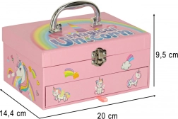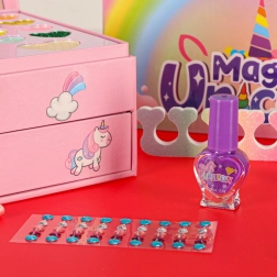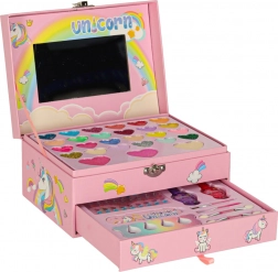 Tento dětský kosmetický set s motivem jednorožce potěší všechny malé princezny. Obsahuje oční stíny, laky na nehty a další nástroje potřebné pro tvorbu krásných vzhledů.