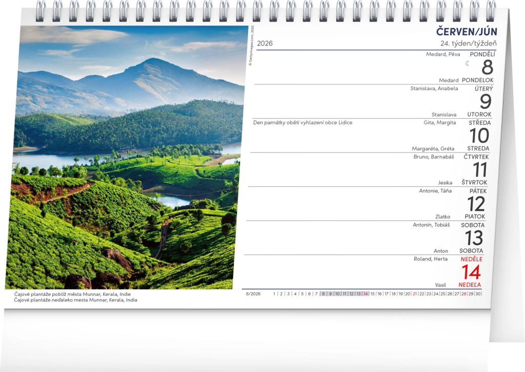 S kalendářem Krajina 2026 se každý týden přenesete do jiného kouzelného kouta světa. Obsahuje 53 úchvatných fotografií krajiny doplněných o česko-slovenské kalendárium s vyznačenými svátky a památnými dny.