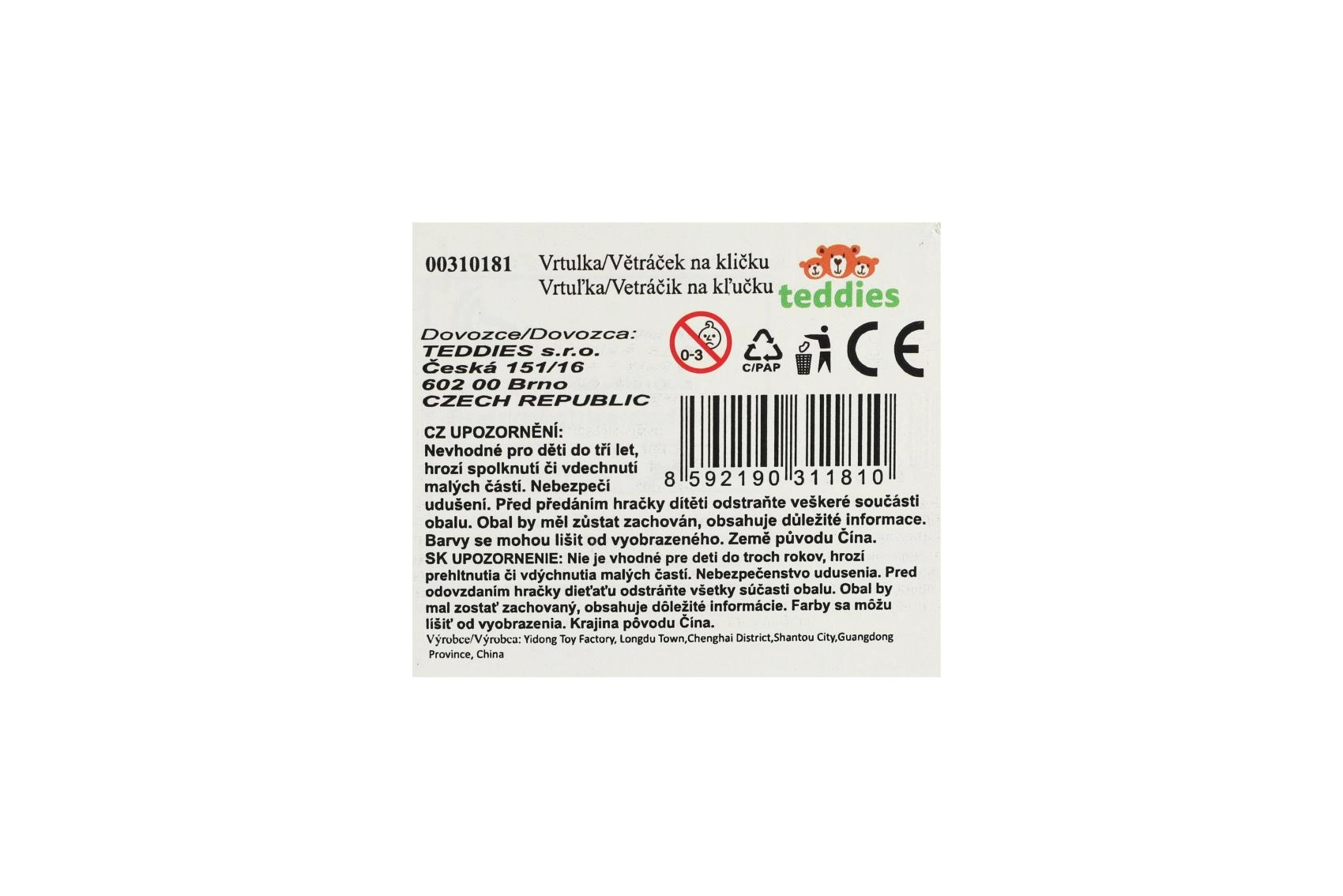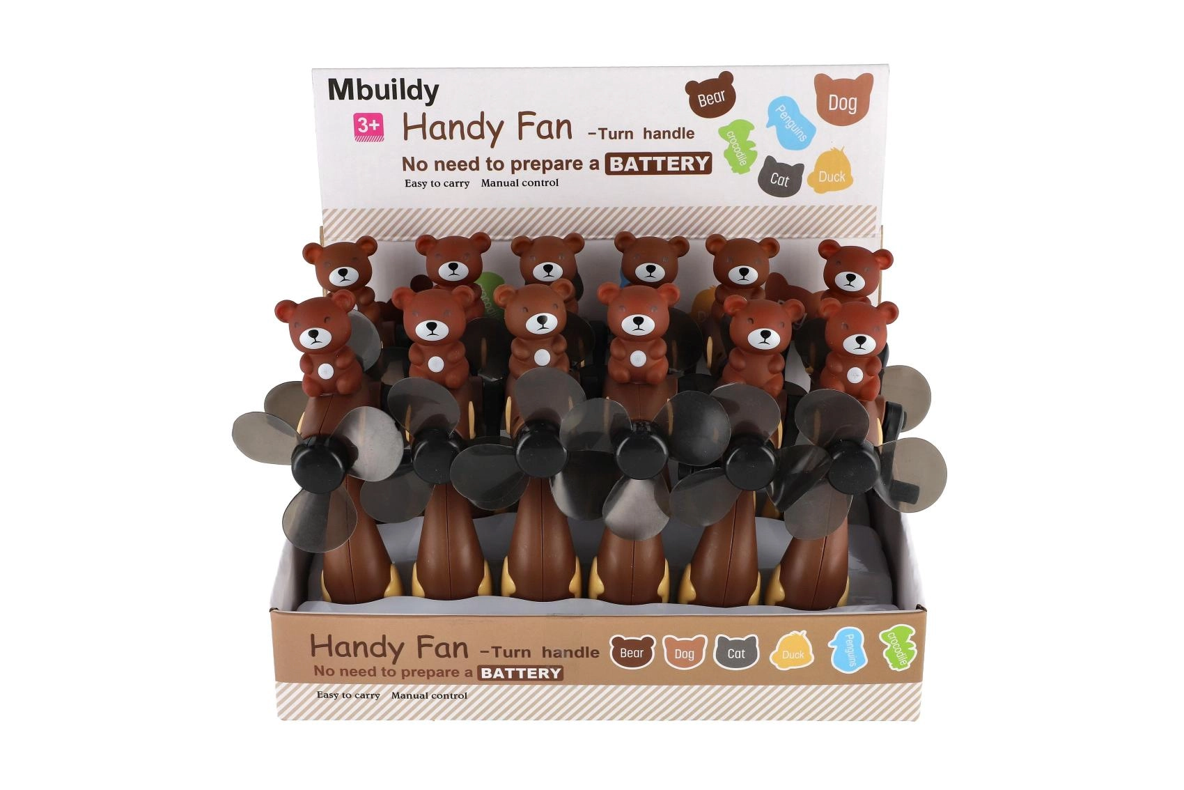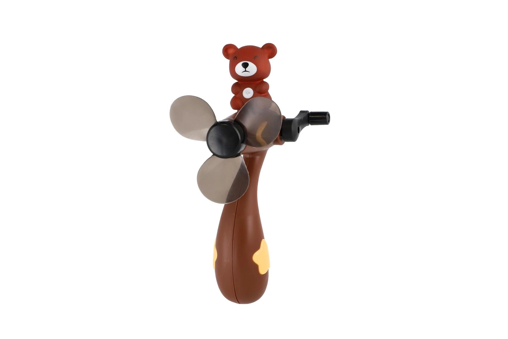 Roztomilý větráček s motivem medvídka potěší každé dítě. Stačí zatočit kličkou a lopatky vrtulky se začnou rychle točit. Ideální jako drobný dárek nebo zpestření venkovní hry.