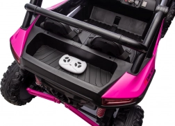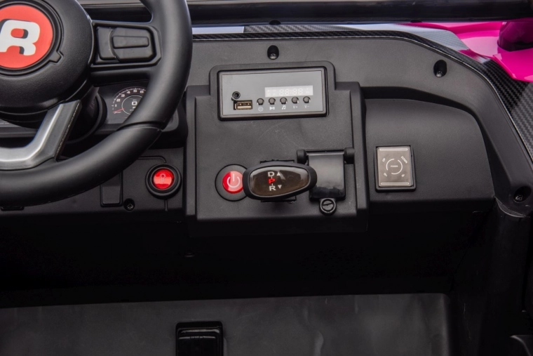Toto dětské elektrické vozidlo je vybaveno 4 motory o výkonu 120W každý a akumulátorem 24V/7Ah, což zajišťuje silný výkon a dlouhou jízdu. Má dálkové ovládání na 2.4 GHz s trojitou rychlostí a bezpečnostním tlačítkem Stop pro maximální bezpečnost.