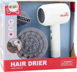 Fén byl navržen s ohledem na bezpečnost a pohodlí našich nejmladších uživatelů. Jeho obsluha je intuitivní – stačí vložit jednu AA baterii, což aktivuje jemný proud vzduchu a realistické zvukové efekty. Dvě zaměnitelné koncovky umožňují vytvářet různé účesy: podlouhlý nástavec je ideální pro vyrovnání vlasů, zatímco difuzér se hodí pro vlny a lokny.