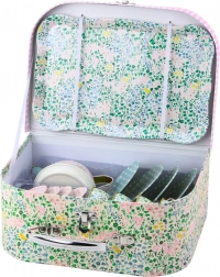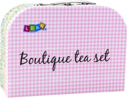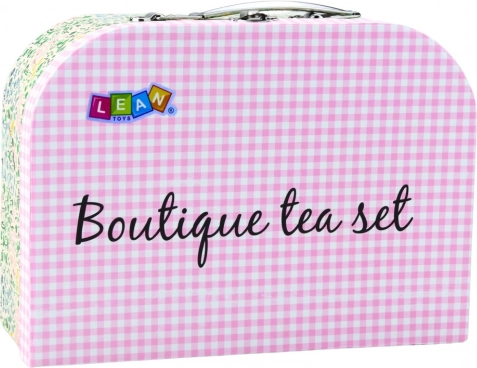 Celá sada je zabalena v elegantním retro kufříku, vyrobeném z pevné lepenky s kovovými prvky, s květinovým a kostkovaným vzorem. Kufřík má pohodlné držadlo a uzávěr, díky čemuž je snadné jej vzít na piknik, procházku nebo do zahrady. Nejen že je krásná, ale i funkční hračka, která se dokonale hodí jako dárek – jak pro dívky, tak pro chlapce, kteří mají rádi kreativní hru.