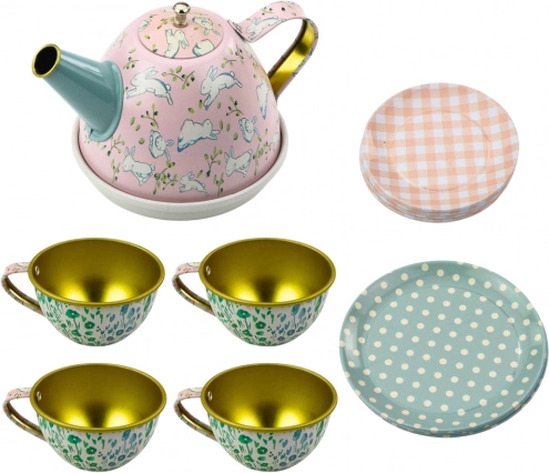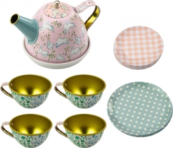 Realisticky zpracovaná kovová čajová sada obsahuje šálky, podšálky, talíře, tácek a konvičku. Dítě si může samo zorganizovat čaj pro své hosty, přičemž se učí základy etikety, spolupráce a důrazu na detaily. Hra s touto sadou podporuje kreativitu, manuální zručnost a posiluje mezilidské dovednosti.