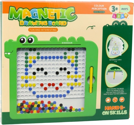 Magnetická tabule Dino, edukační hračka pro rozvoj dovedností a kreativitu s 20 vzory. Ideální pro děti.