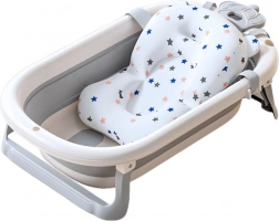 Vanička je vybavena stabilním skládacím rámem s protiskluzovými nohami, které zvyšují přilnavost a zabraňují nechtěnému posouvání. Je vyrobena z bezpečných, netoxických materiálů PP a TPE, které jsou jemné k citlivé dětské pokožce a odolné proti poškození. Součástí balení je měkká koupelová podložka, která drží dítě v pohodlné poloze a poskytuje mu teplo a pocit bezpečí.