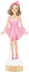- Panenka, 30 magnetických částí (oblečení, boty, doplňky), dřevěný podstavec