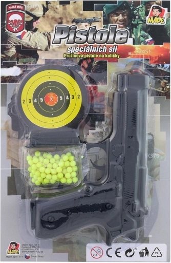 Užijte si zábavu s touto dětskou pistolí na kuličky, která přichází s náhradními kuličkami pro nekonečnou hru.
