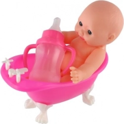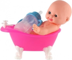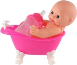Tato malá panenka miminko ve stylové růžové vaničce inspiruje děti k fantazijní hře a rozvíjí jejich sociální dovednosti. Díky lahvičce mohou malí pečovatelé trénovat krmení a péči o miminko, zatímco koupací scénky ve vaničce podpoří jejich představivost. Lehký plast a příjemné rozměry se dobře drží a snadno uklízí.