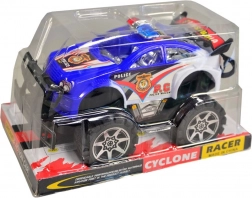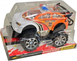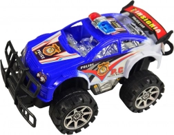 Policejní terénní auto, ideální hračka pro malé dobrodruhy. Vyniká svým plastovým materiálem a velkými koly, které zvládají i nerovný terén.
