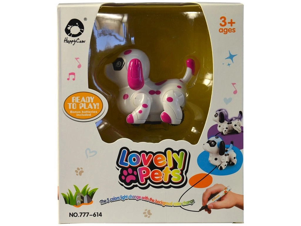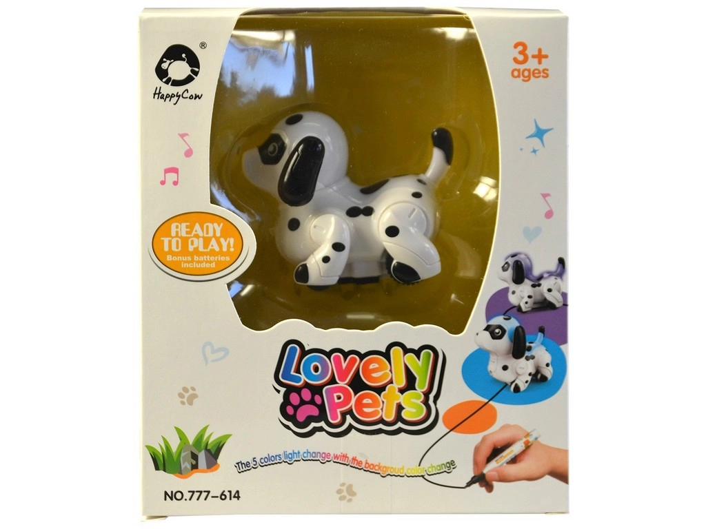Tento kreativní pejsek přináší hodiny zábavy pro děti. Sleduje předkreslené čáry a zároveň reaguje na barevné podklady změnou své barvy, což činí hru ještě interaktivnější.